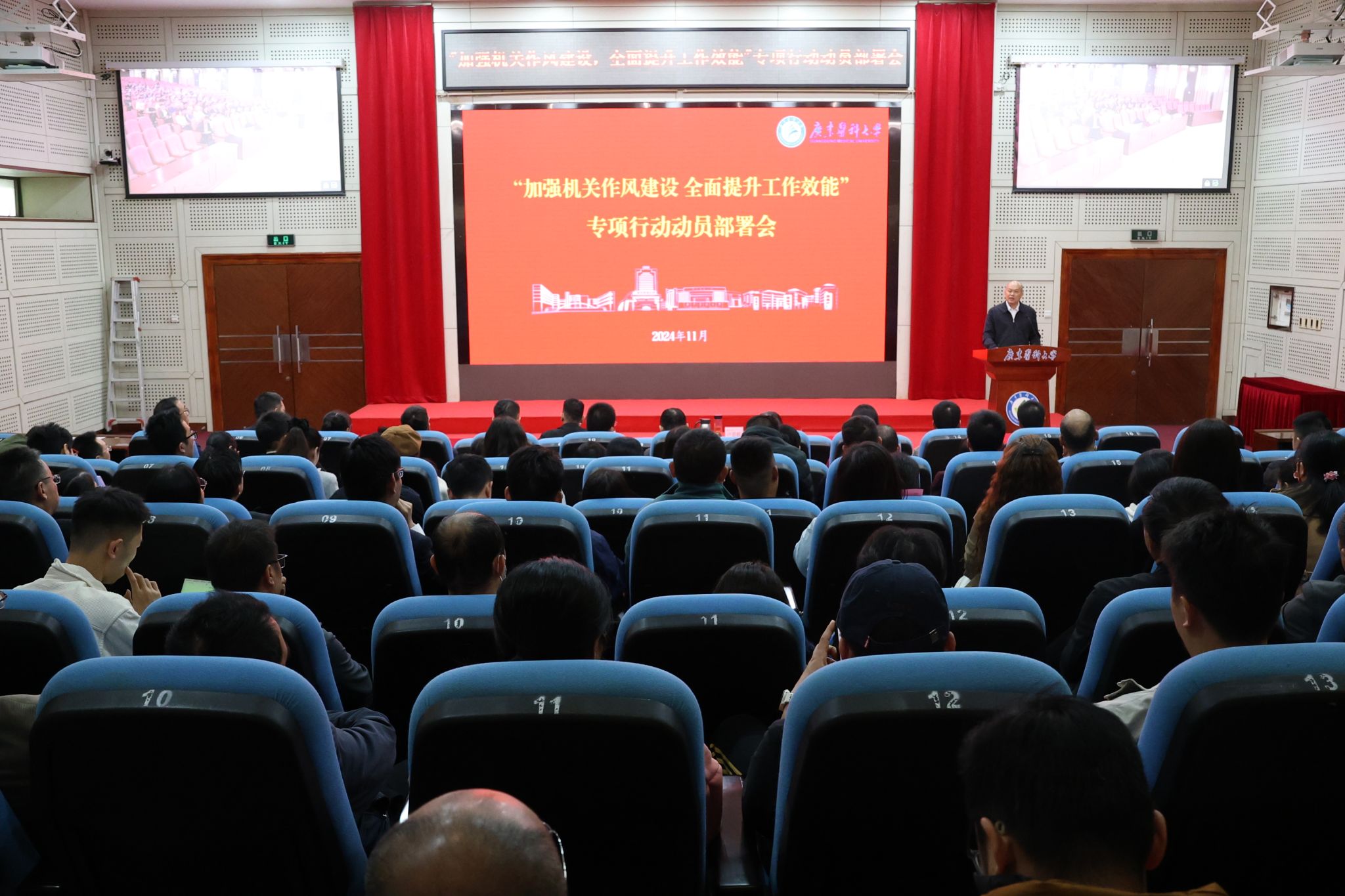 11月29日上午,学校召开“加强机关作风建设,全面提升工作效能”专项行动动员部署会。学校党委书记、校长卢景辉出席会议并讲话,党委副书记黄达海,党委常委、组织统战部部长赖焱烽及机关全体同志参加会议。会议由学校党委副书记黄达海同志主持。