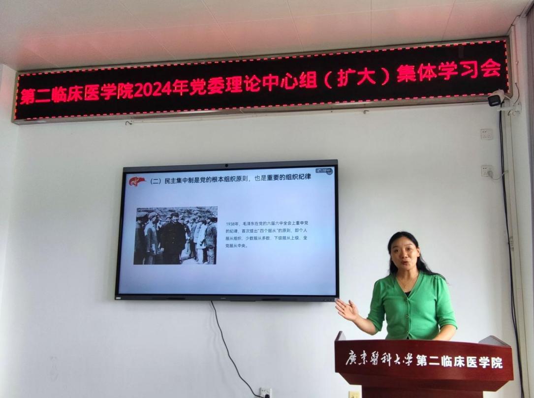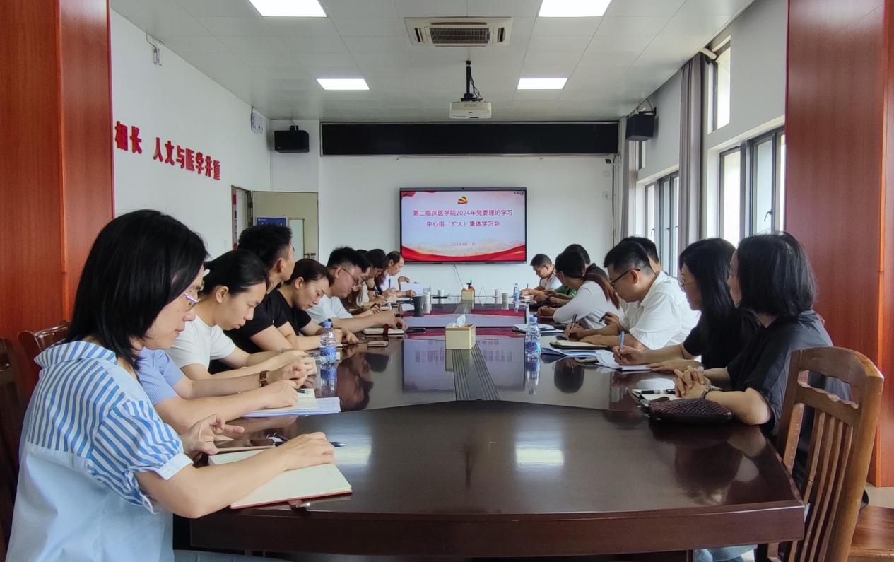 6月11日上午,第二临床医学院党委在学院115会议室召开2024年第三次党委理论学习中心组(扩大)集体学习会。学校党委理论学习中心组巡听旁听工作组茹正开组长、第二临床医学院党委理论学习中心组成员、纪委委员、全体党支部书记参加会议,会议由学院党委杨海云书记主持。