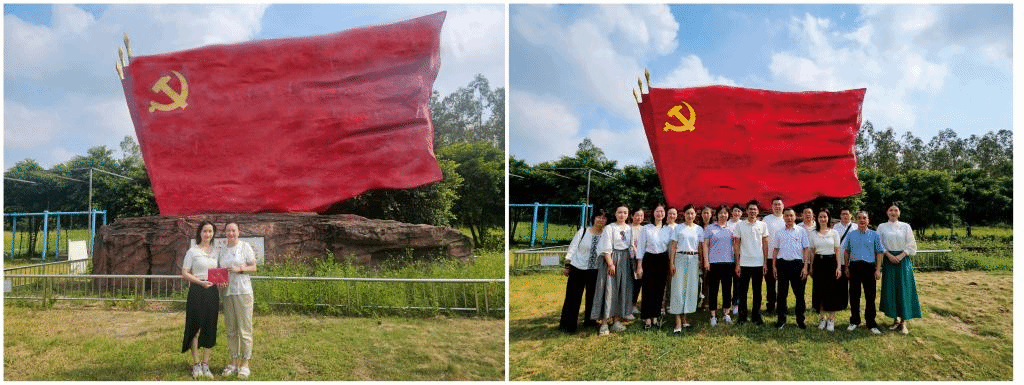 随后,一行人移步至绿意盎然的大草坪,举行了一场意义非凡的“党员政治生日”活动。在蓝天白云下,全体党员面向鲜红的党旗,庄重地重温入党誓词,进行集体宣誓仪式。那一刻,每一句誓言都铿锵有力,每一个眼神都闪烁着对党的忠诚与热爱,激励着每一位党员不忘初心、牢记使命,继续在新时代的征程上奋勇前行。